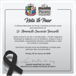 A Câmara Municipal de Paraty manifesta profundo pesar pelo falecimento do